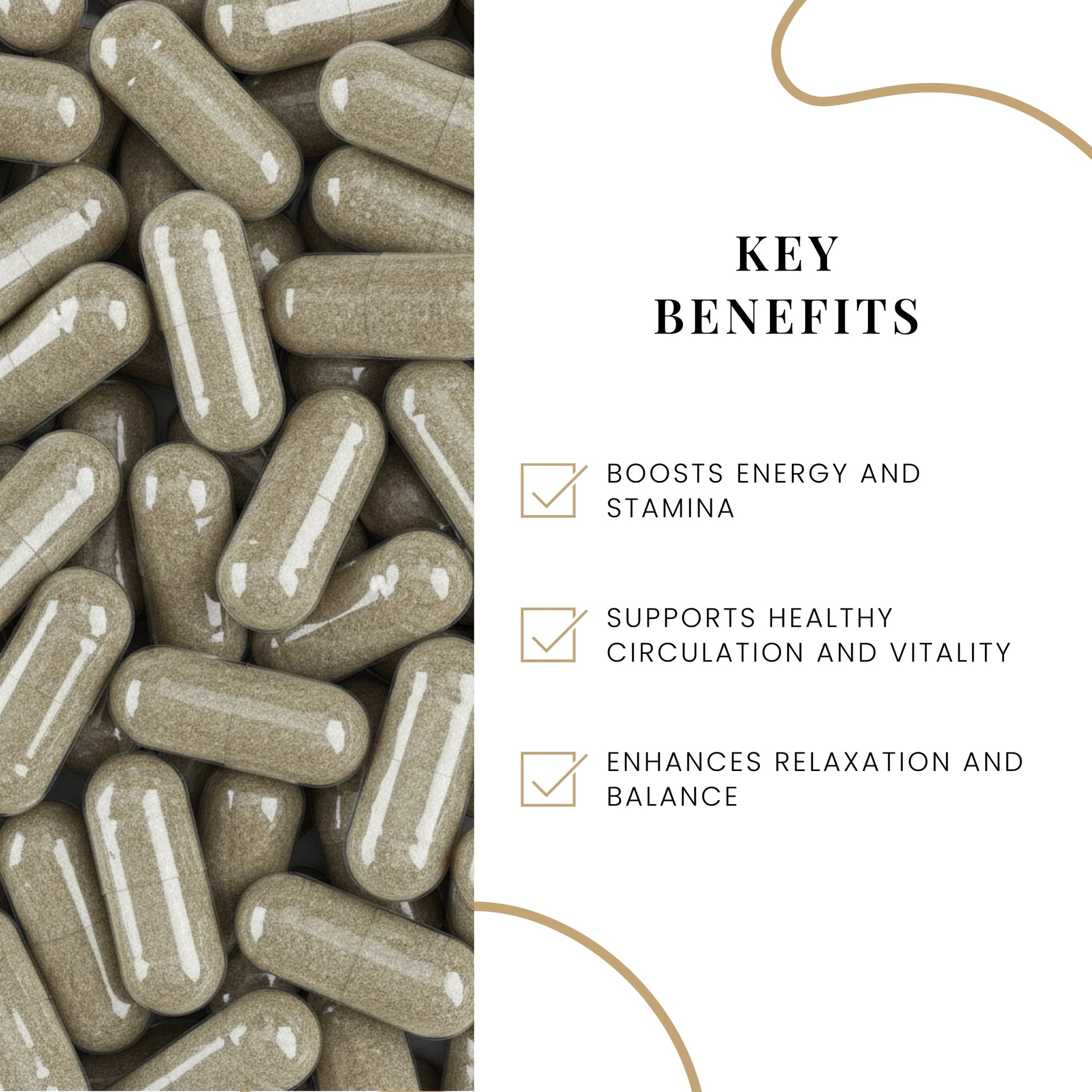 Adaptogenic herbs like Ashwagandha and Ginseng help the body manage occasional stress, promoting a sense of relaxation and balance.