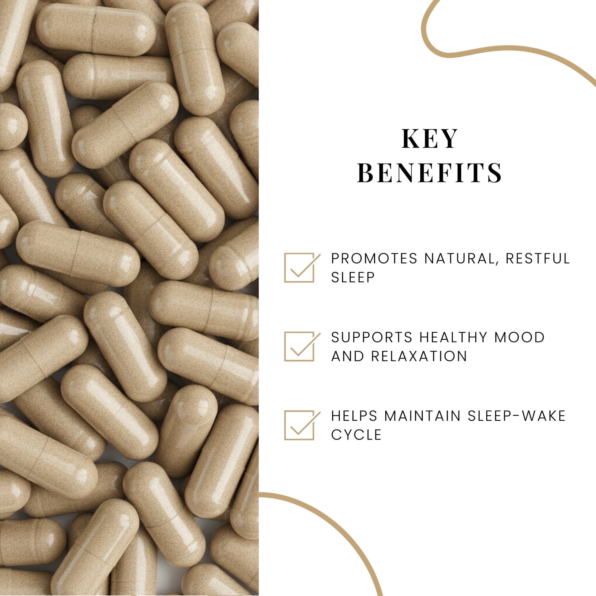 Ingredients like L-Tryptophan and GABA work together to improve mood by supporting neurotransmitter activity, contributing to a more restful night's sleep.